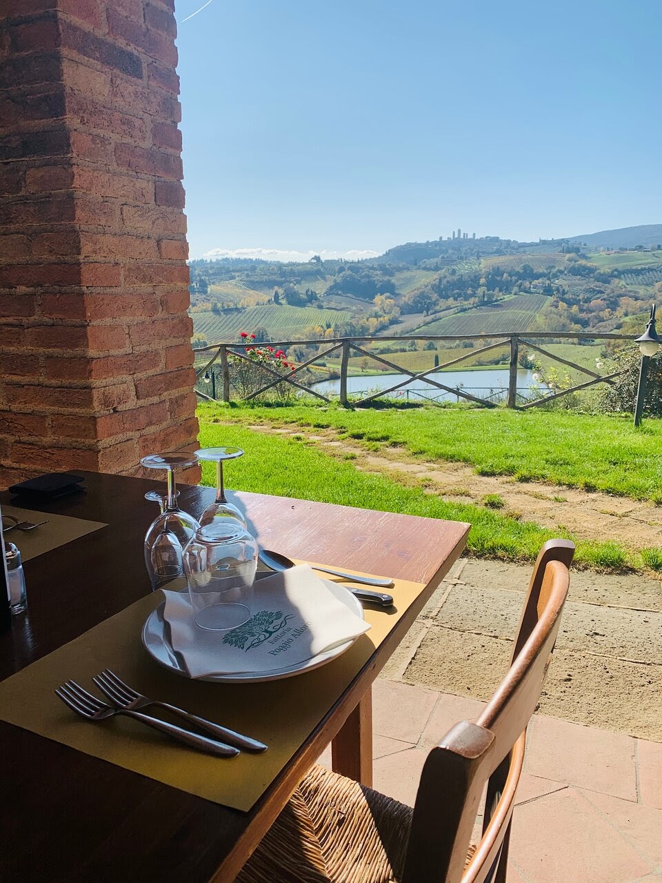 Beyond the village we found a small farmhouse restaurant- the outside with a vast parking lot big enough to accommodate several hundred cars, the inside akin to a huge barn decorated with traditional farmhouse chic, Italian style.