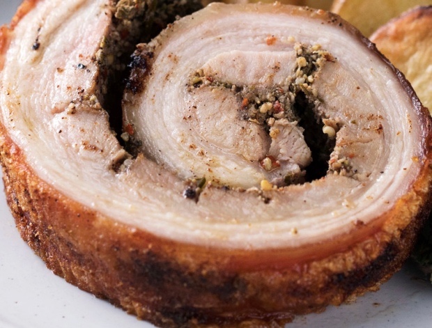 We chose porchetta – an Italian classic dish of savoury, fatty, and moist rolled up boneless pork roasted over a wood fire for eight hours.
