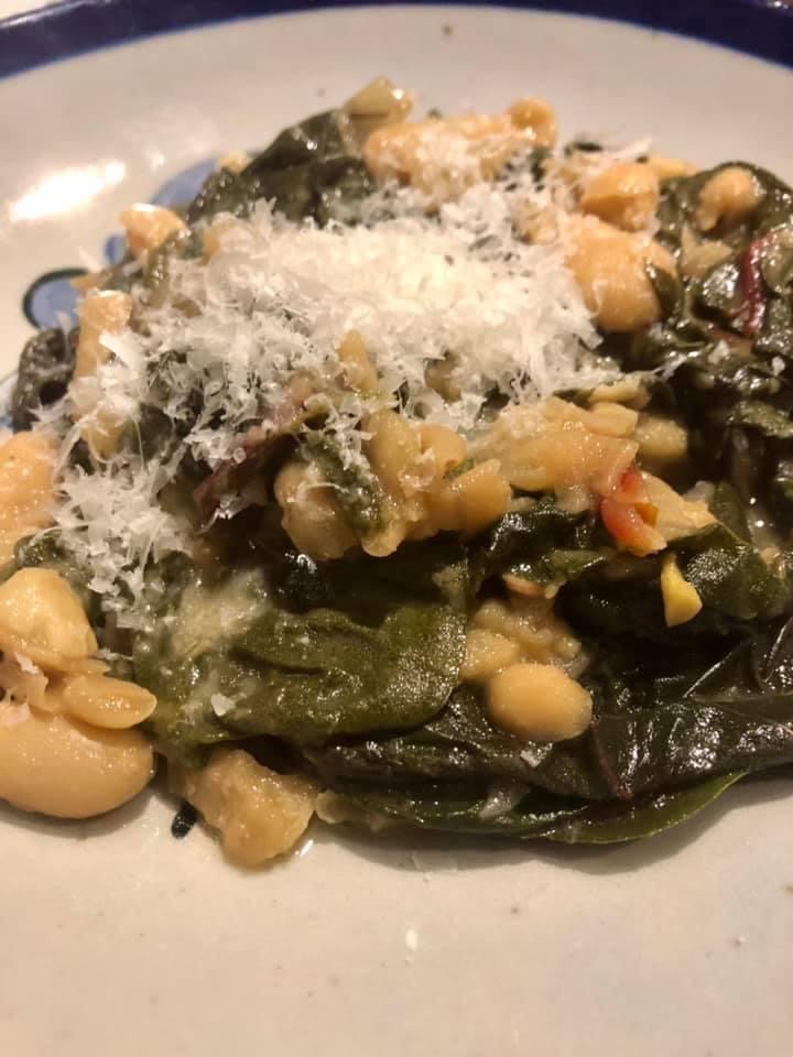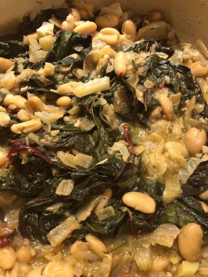 TERRIFIC VEGETARIAN DINNER – WHITE BEANS, SWISS CHARD WITH CHEESE, SALAD AND TOAST