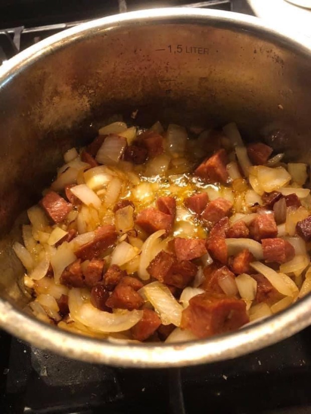SUPER DELICIOUS PEASANT SOUP – BLACK BEANS, CHORIZO, ONIONS