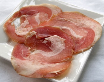1/2 pound of pancetta, a non-smoked bacon.