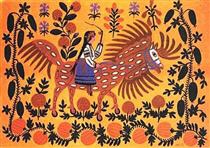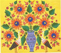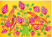 This self-taught Ukrainian village folk art painter garnered widespread acclaim for her naive art.