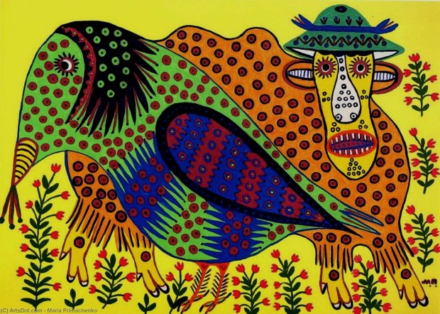 Maria Pryimachenko’s art – colourful, childlike, adorable, memorable.