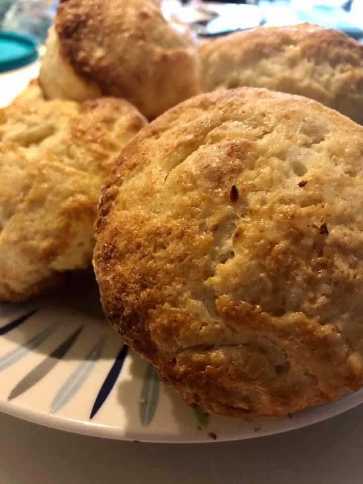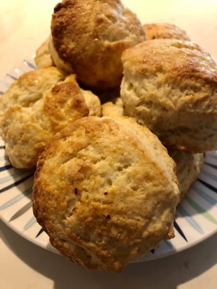 These scones are fluffy and light, totally delicious. They are more like British scones, unlike American scones that use more sugar and are heavier and more dense.