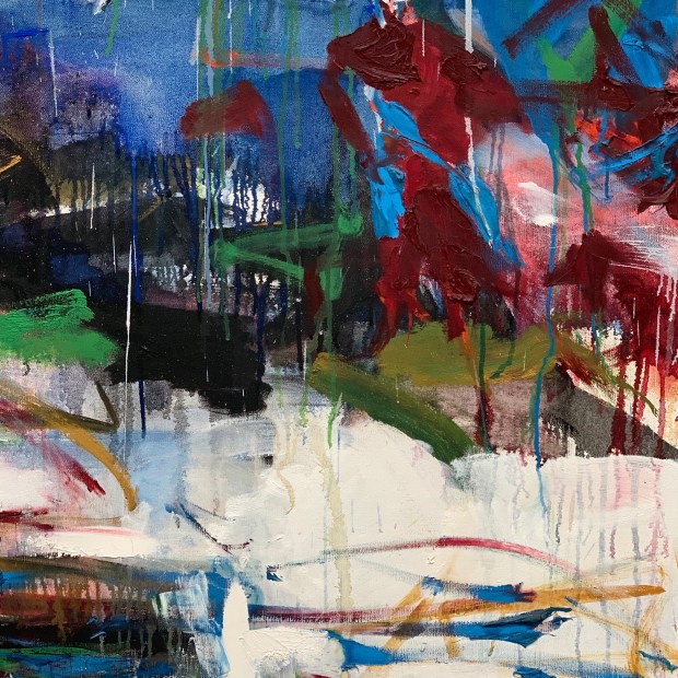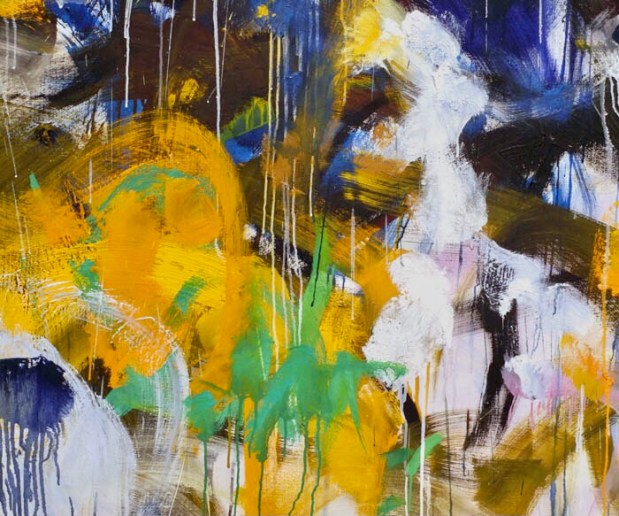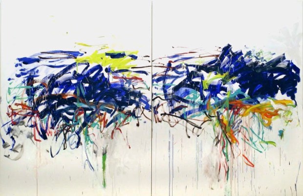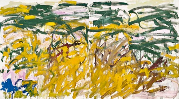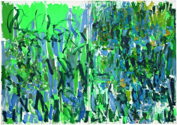 “There is something classical about Mitchell’s work, something verging on the timeless. Aristotle said that, “Beauty depends on magnitude and order.” Mitchell’s work has both in spades, and pairing her large canvases as diptychs, triptychs, and even quadriptychs seems meaningful. They are altarpieces in her religion of painting.”
