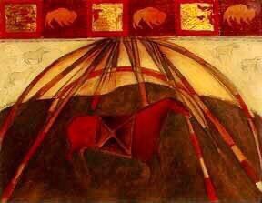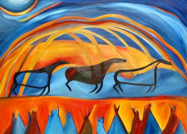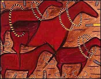 Her style of painting was unique – using lots of colour (red being a dominant one) and contemporary approaches to imagery, including images of ancient petroglyphs.