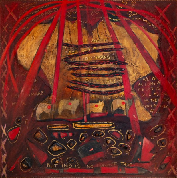 “Joane’s work was visionary. She was one of the first Indigenous artists to explore issues like the devastation of the impact of the treaties, the horror of the residential schools, and the collision of traditional and contemporary values.”