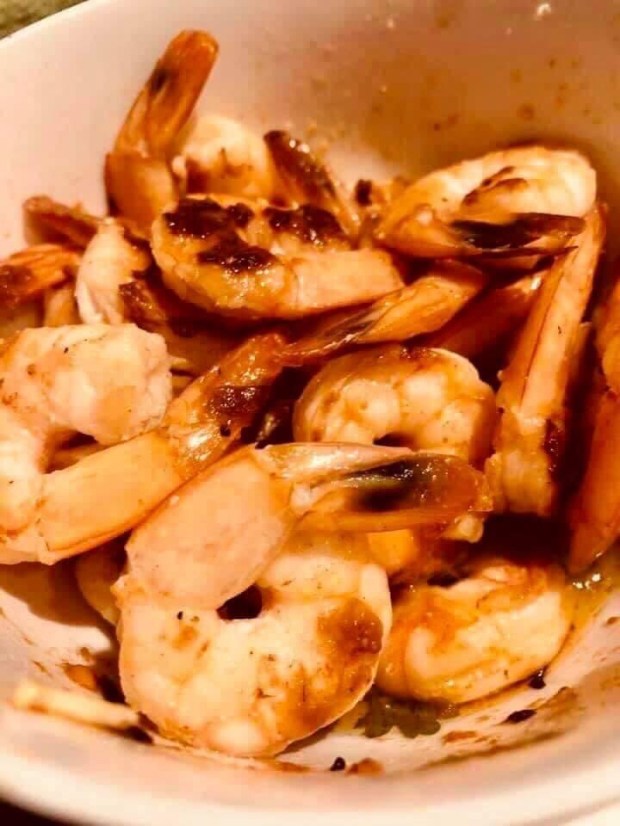Take your shrimp and put on the hot BBQ or oven.