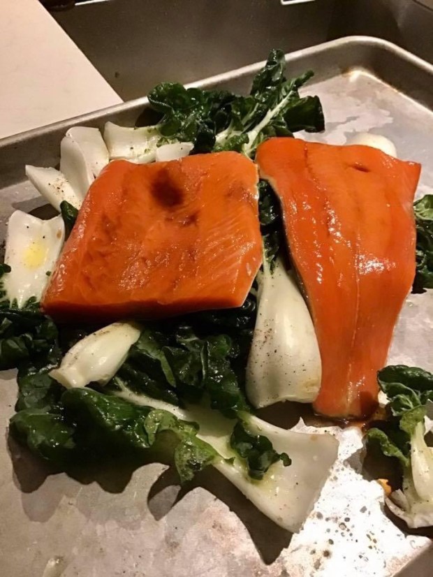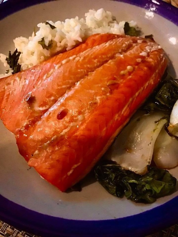 The crisp bok choy with its earthy taste goes well with the luxurious salmon with its hint of sweetness from the Teriyaki sauce and that coupled with that slight bit of tartness from the rice makes for a wonderful dinner.