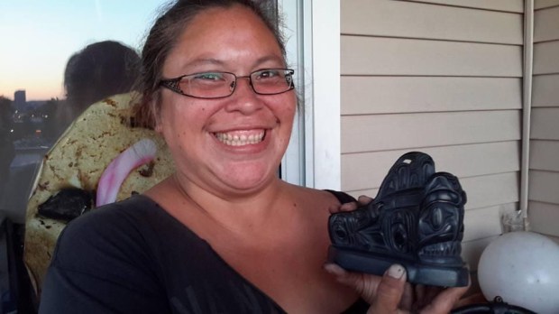 Melanie comes from a well-known and highly-respected line of Haida carvers, her mother Faye and her dad, Ed.