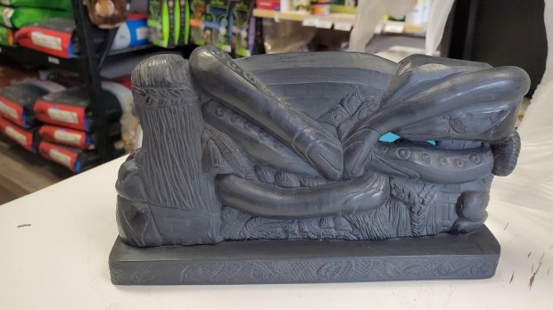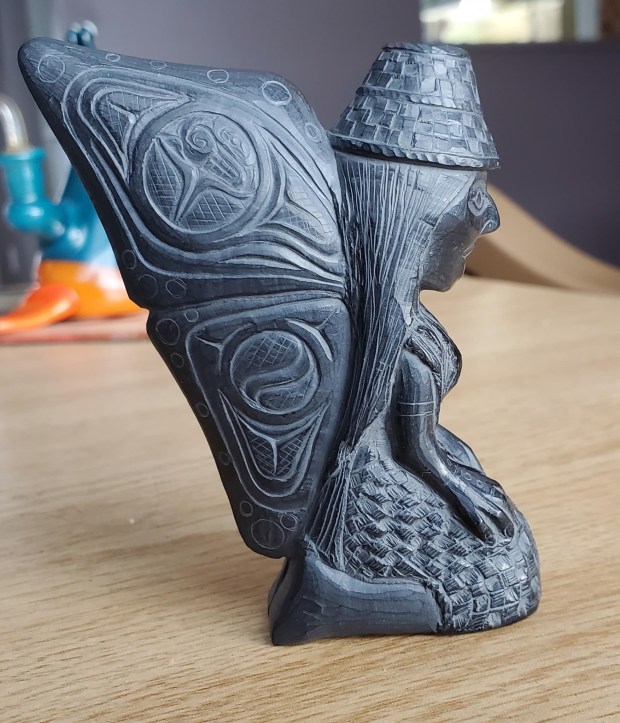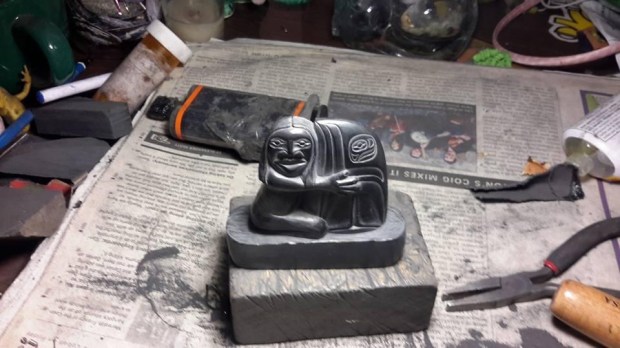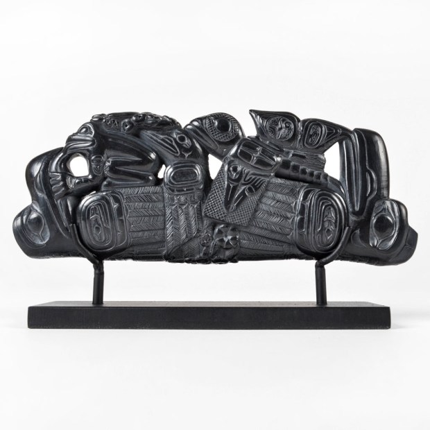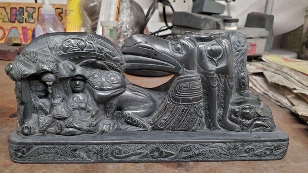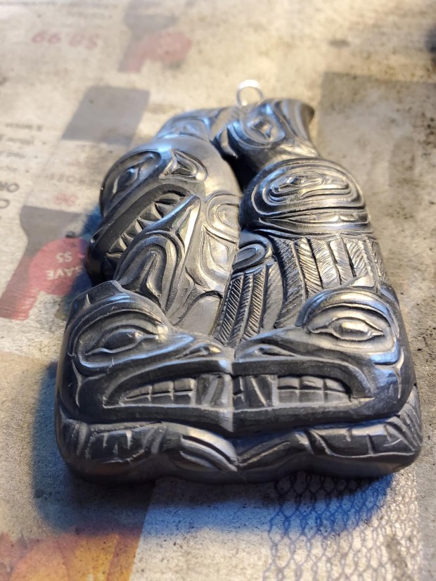 Using argillite as a carving medium also is rare as it’s is waning among Northwest Coast artists.