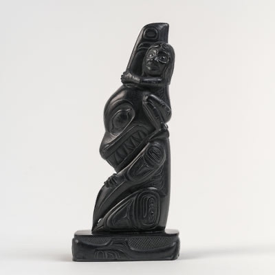 She is a female Northwest Coast carver using argillite to produce beautiful, magical, carvings, deeply steeped in the traditions, symbols and myths of her Haida heritage and nation.