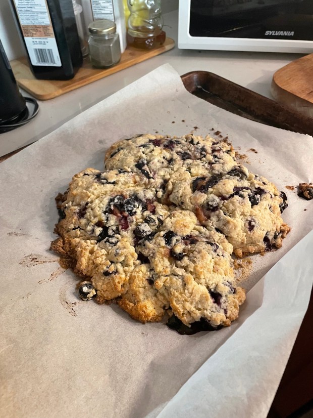 Form the dough into an 8-inch round mixture and then place on a wax paper lined baking sheet – put into a preheated 400 degrees oven and bake for 35 minutes.