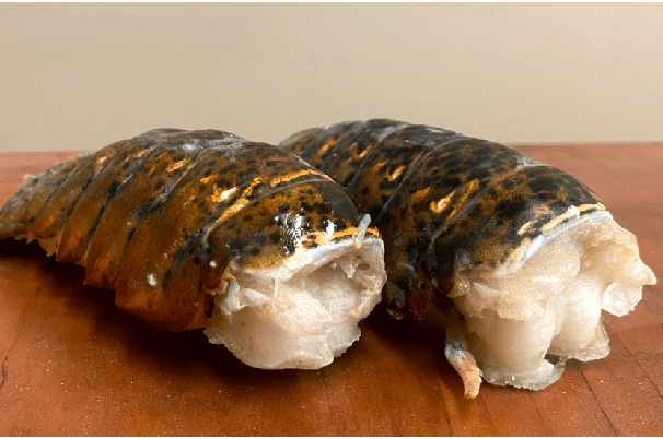 Once done, turn over the tails, and with your palm press on the lobster tail, this will ensure it spreads out nicely.