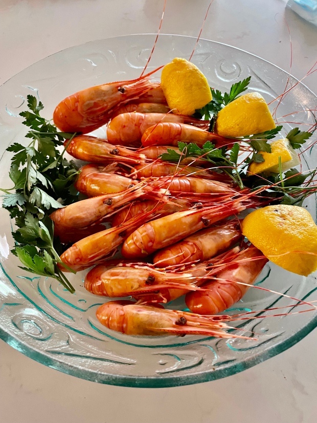 Squeeze juice from one lemon over the prawns, reserve the other lemon for use on your dinner plate.