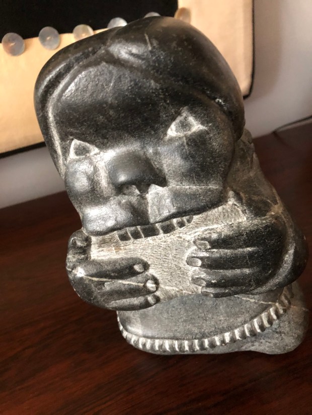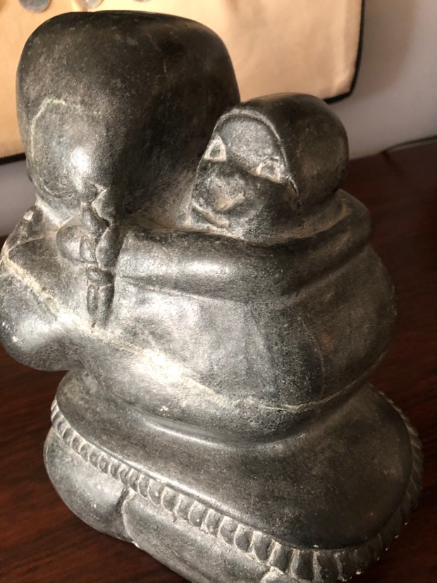 On a trip to a tiny Inuit village Houston exchanged several of his paintings for a small Inuit carving.