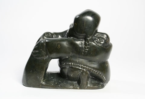 His art represent facets of Inuit life, hunting and child rearing. Many featuring a mother with a hare lip and a child; the mother, his wife.