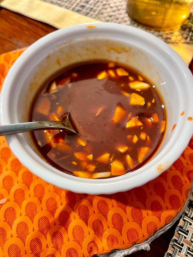 Add all the spices and sauces into the small bowl and mix well, set aside.