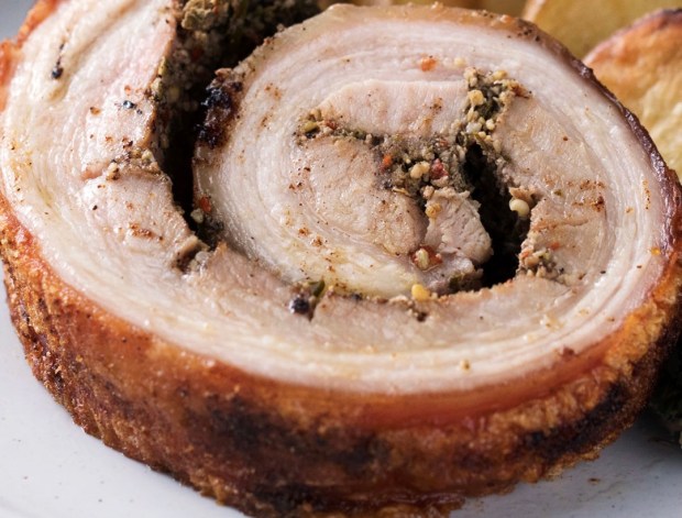 1 thick slice of cooked porchetta about 8 to 10 ounces – store bought.