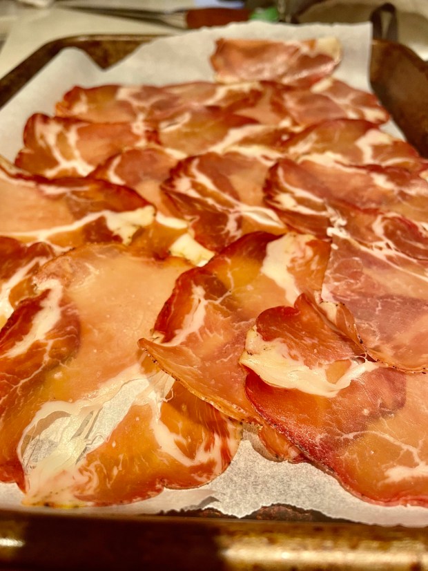 10 minutes before the gnocchi and veggies are done add the pancetta into the oven.