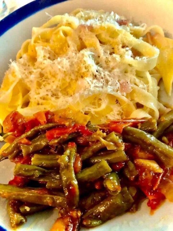 The pappardelle pasta is bathed in a lemon butter sauce, light and refreshing, a nice contrast with sautéed tomatoes, bell peppers and green beans in olive oil, a medley of earthy, sweet, robust and rustic flavours.