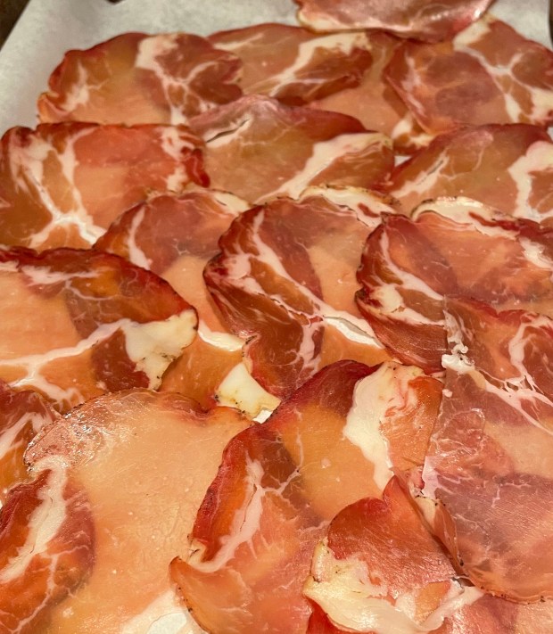 10 slices pancetta – it’s Italian salt-cured pork belly, and is a flavour bomb for many dishes.