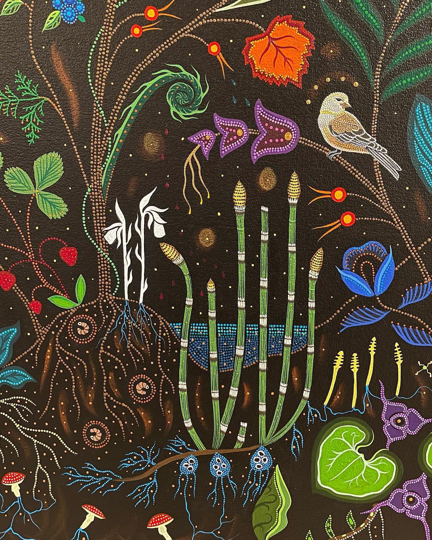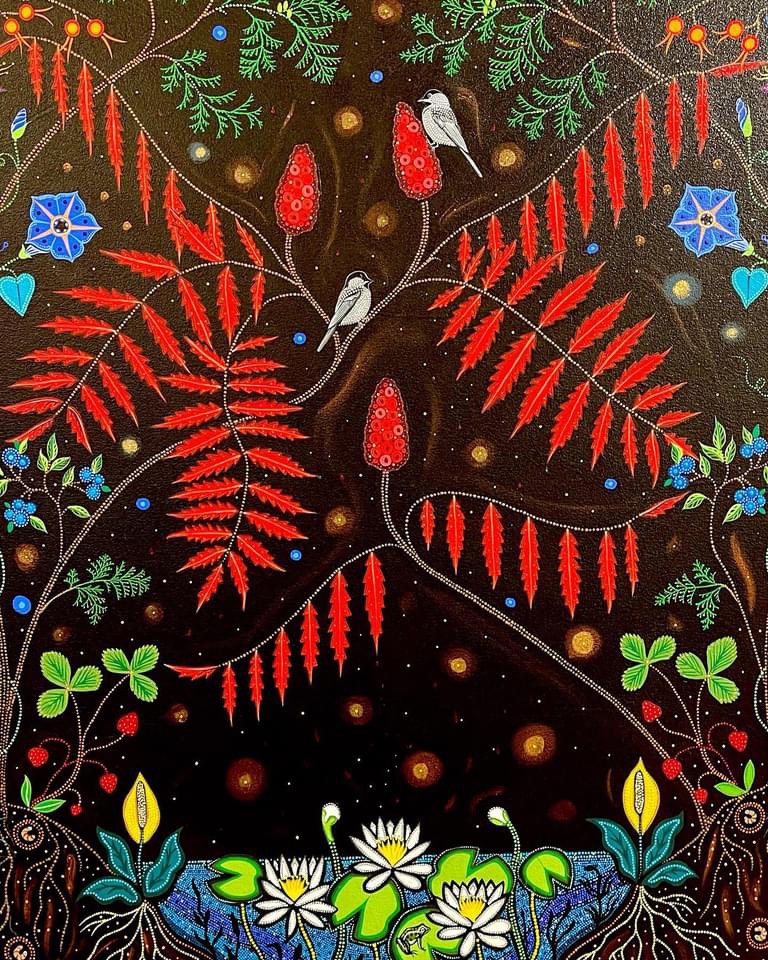 Christi Belcourt’s paintings are lush, colourful, a celebration of earth’s beauty.
