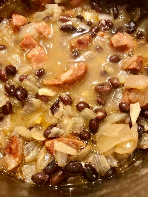 In the meantime open your cans of lentils and beans. Rinse and then add to the pot. Cook for 5 minutes.