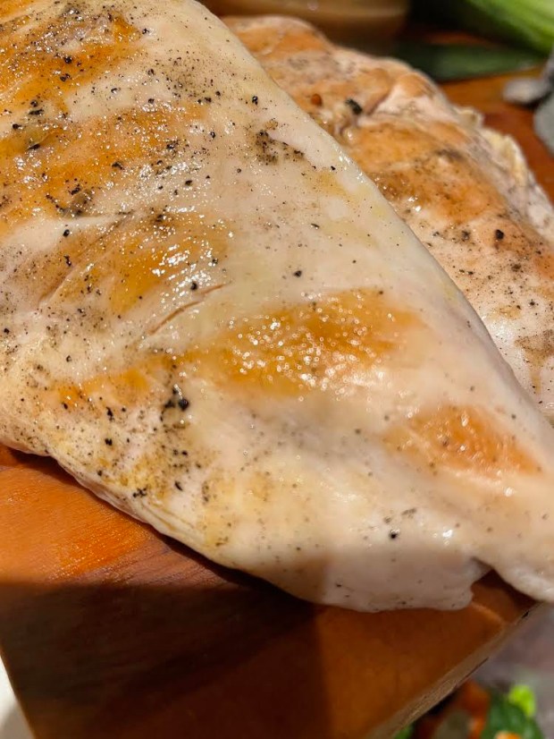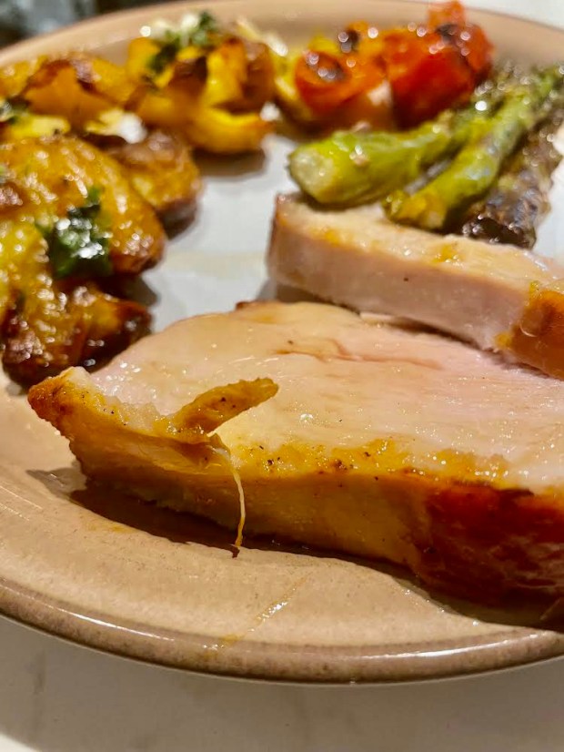 A great combination of flavours and textures – the turkey super juicy, the grilled veggies with a bit of char go well with the roasted smashed potatoes.