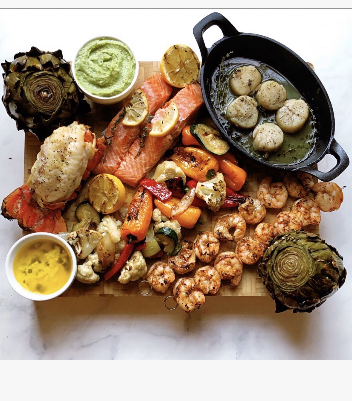 Today there are butter boards, cheese boards, dessert, vegetables and one of the latest seafood, aka Seacuterie.