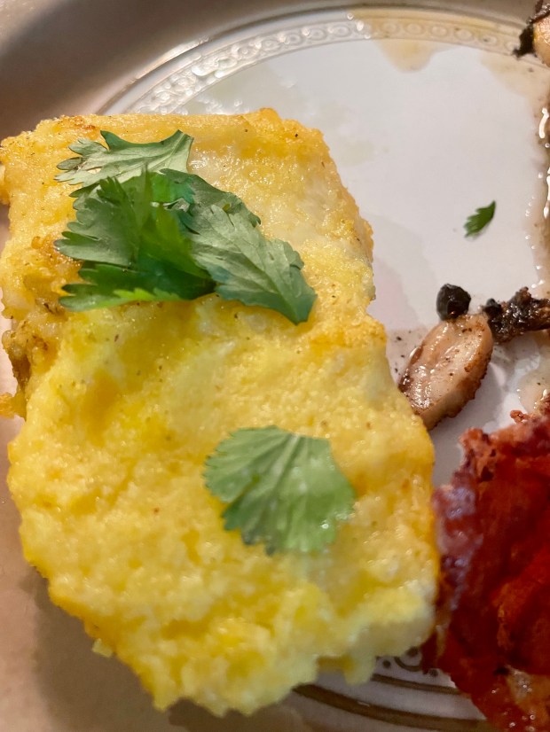 Luscious halibut, cooked to perfection in a lemony butter sauce, creamy polenta infused with a hearty, salty Italian cheese, vegetables with a nice char, different, powerful flavours, all in harmony will delight your taste buds.