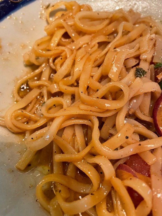 The tuna, rich and succulent, the noodles and red onions slightly crunchy, the scallions providing a nice earthy taste.