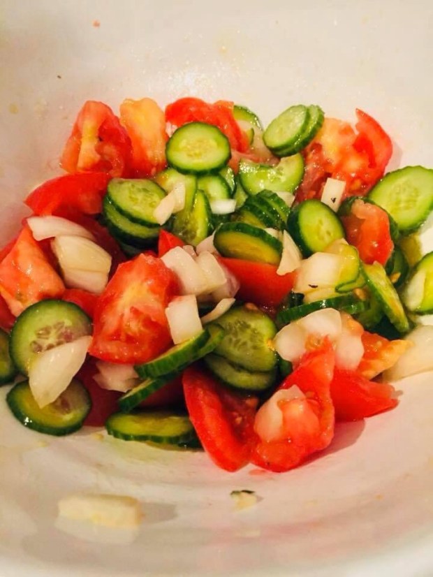 At the end add a splash of red wine vinegar into the frying pan and swoosh the vegetable medley around a few times.