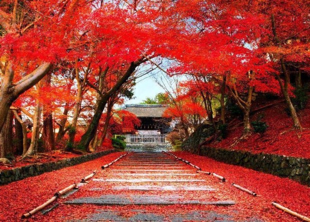 In late autumn, Japan’s green spaces transform into canopies of crimson and amber.