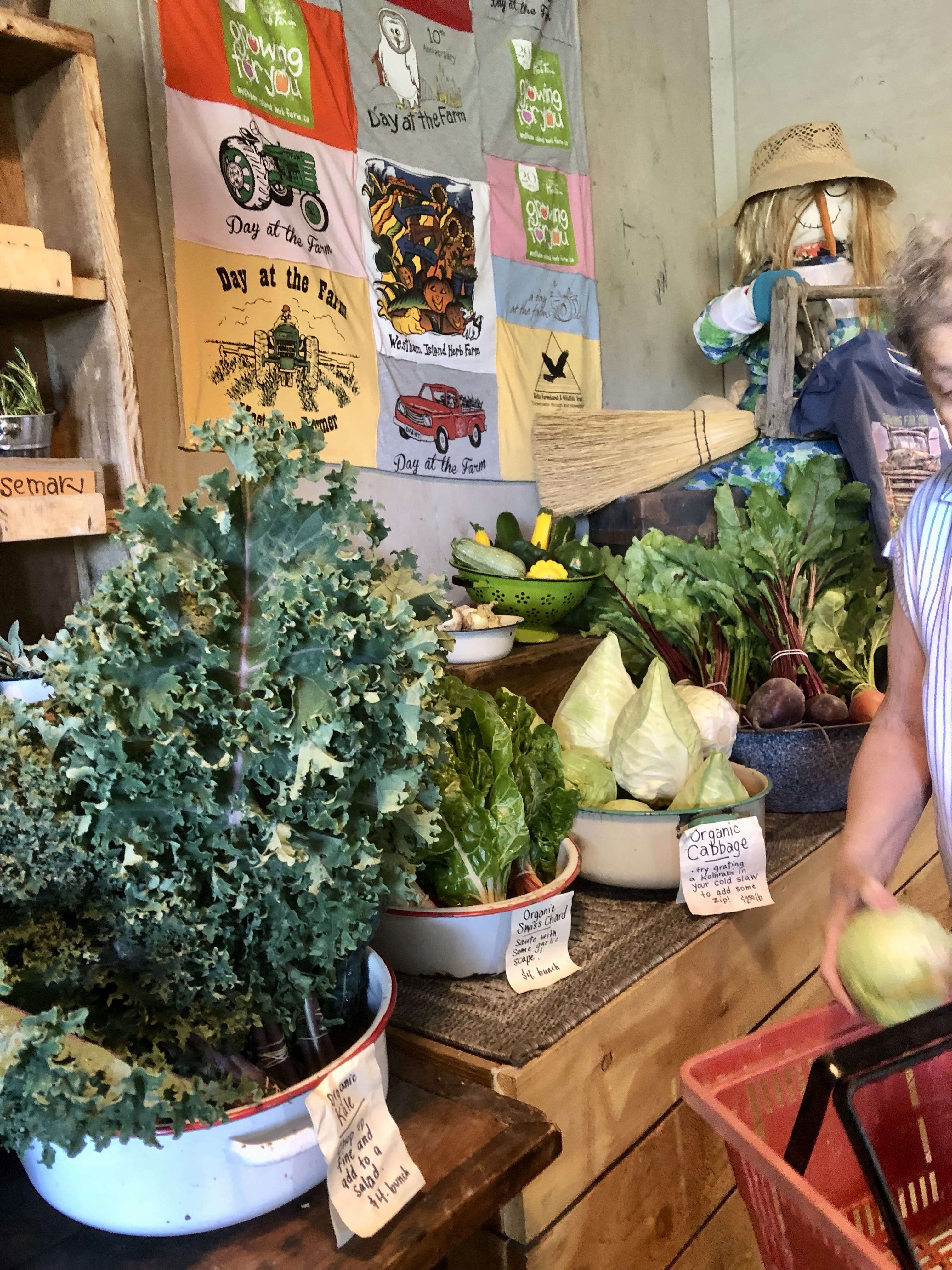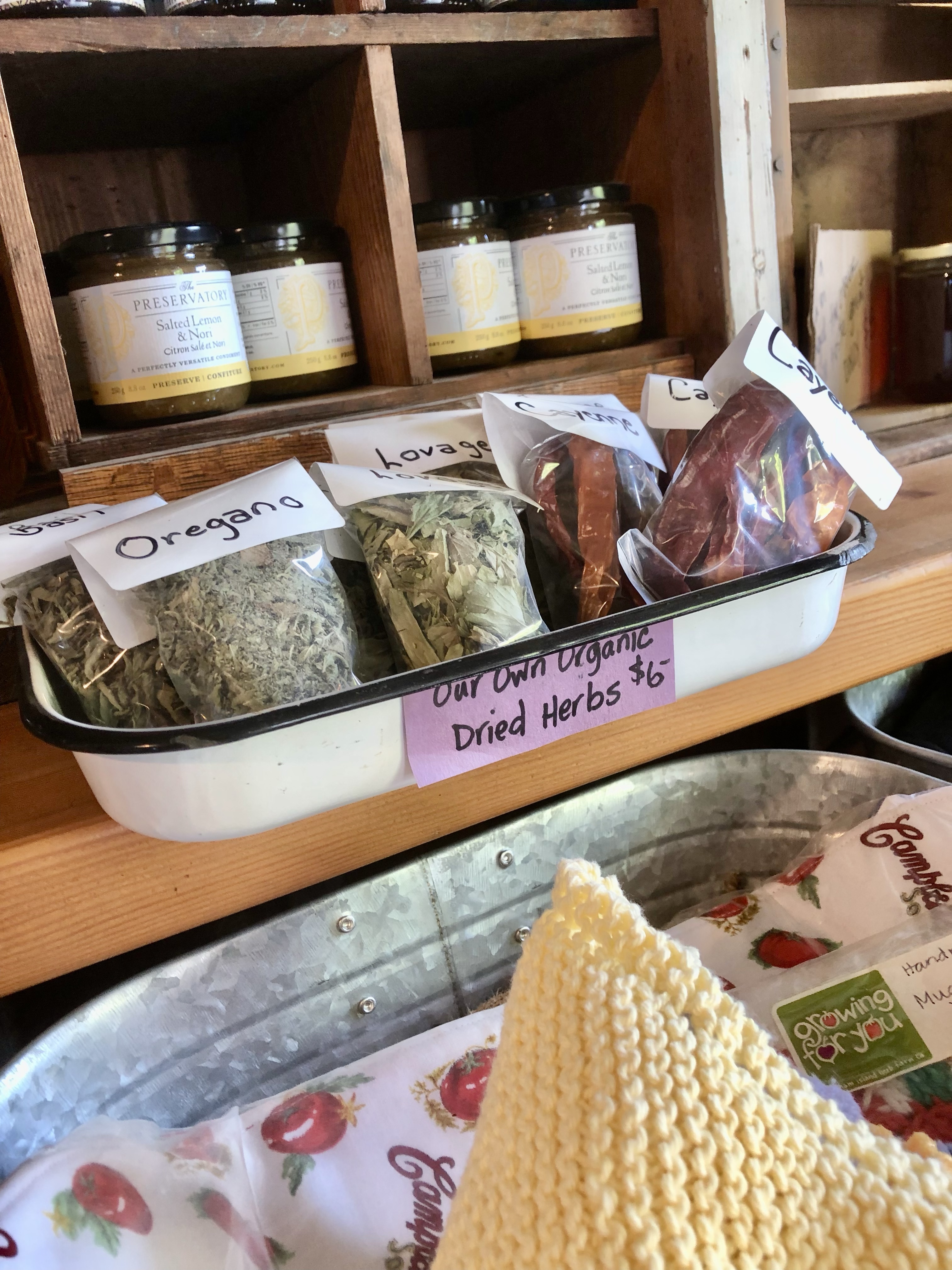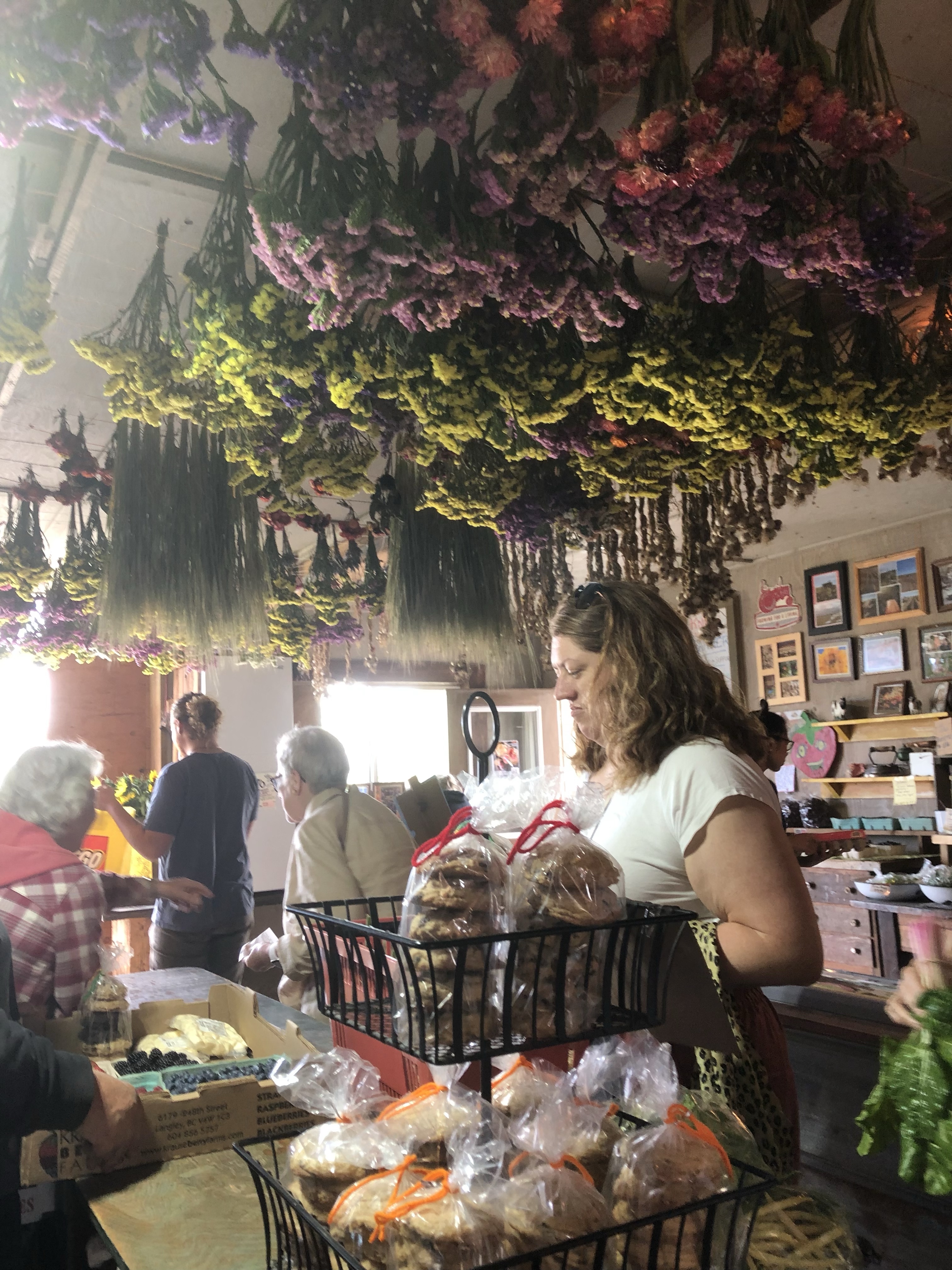 The array of fresh fruits, vegetables – picked that morning – was fantastic, nestled among dried flowers, herbs, home-made jams, and more.