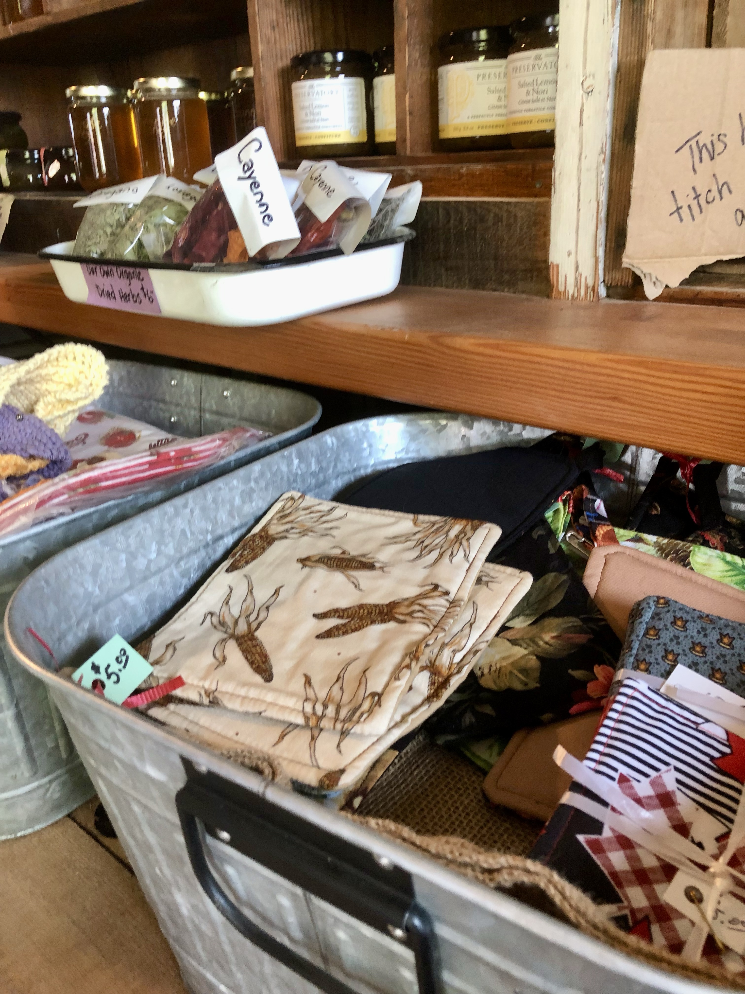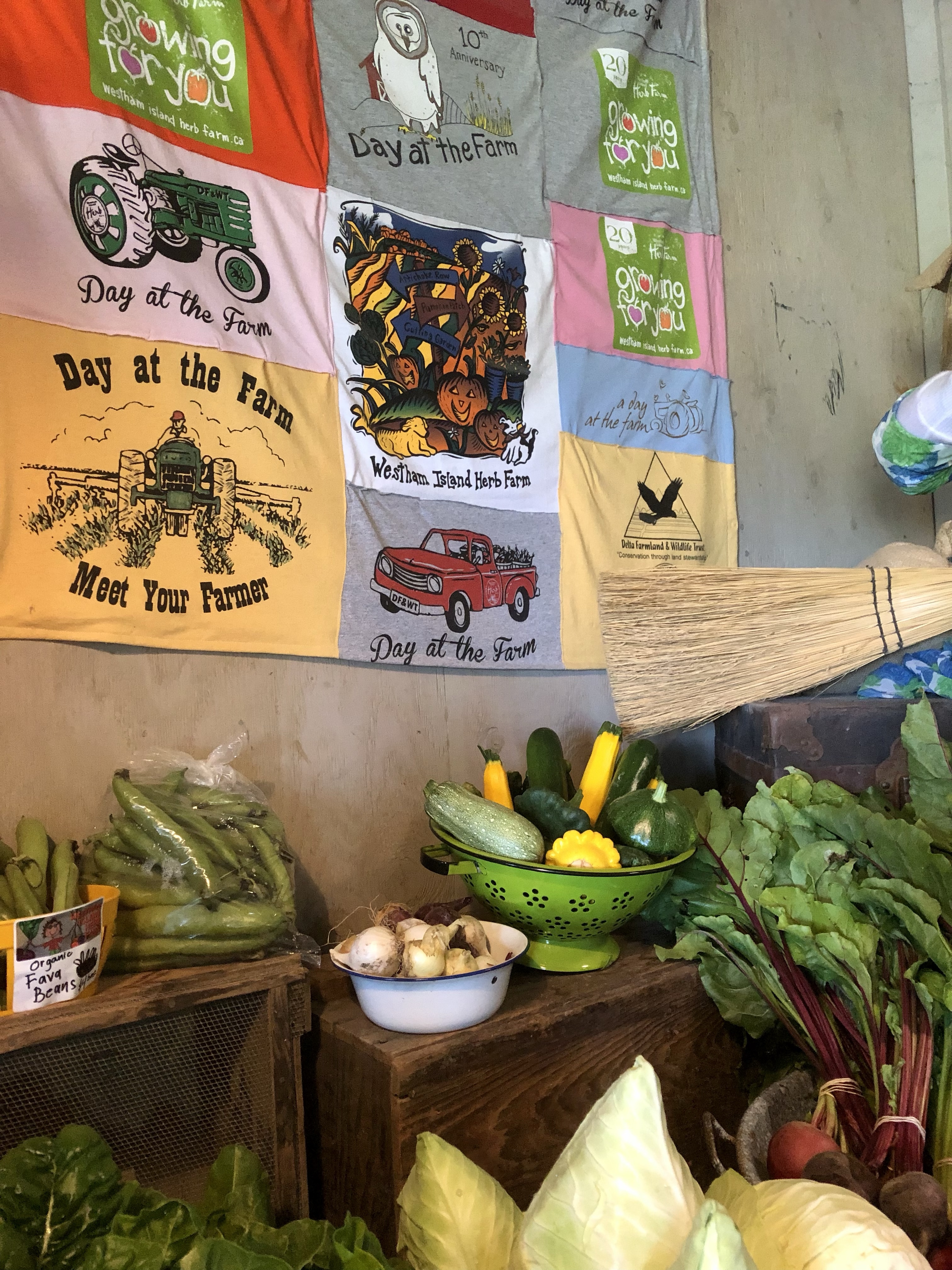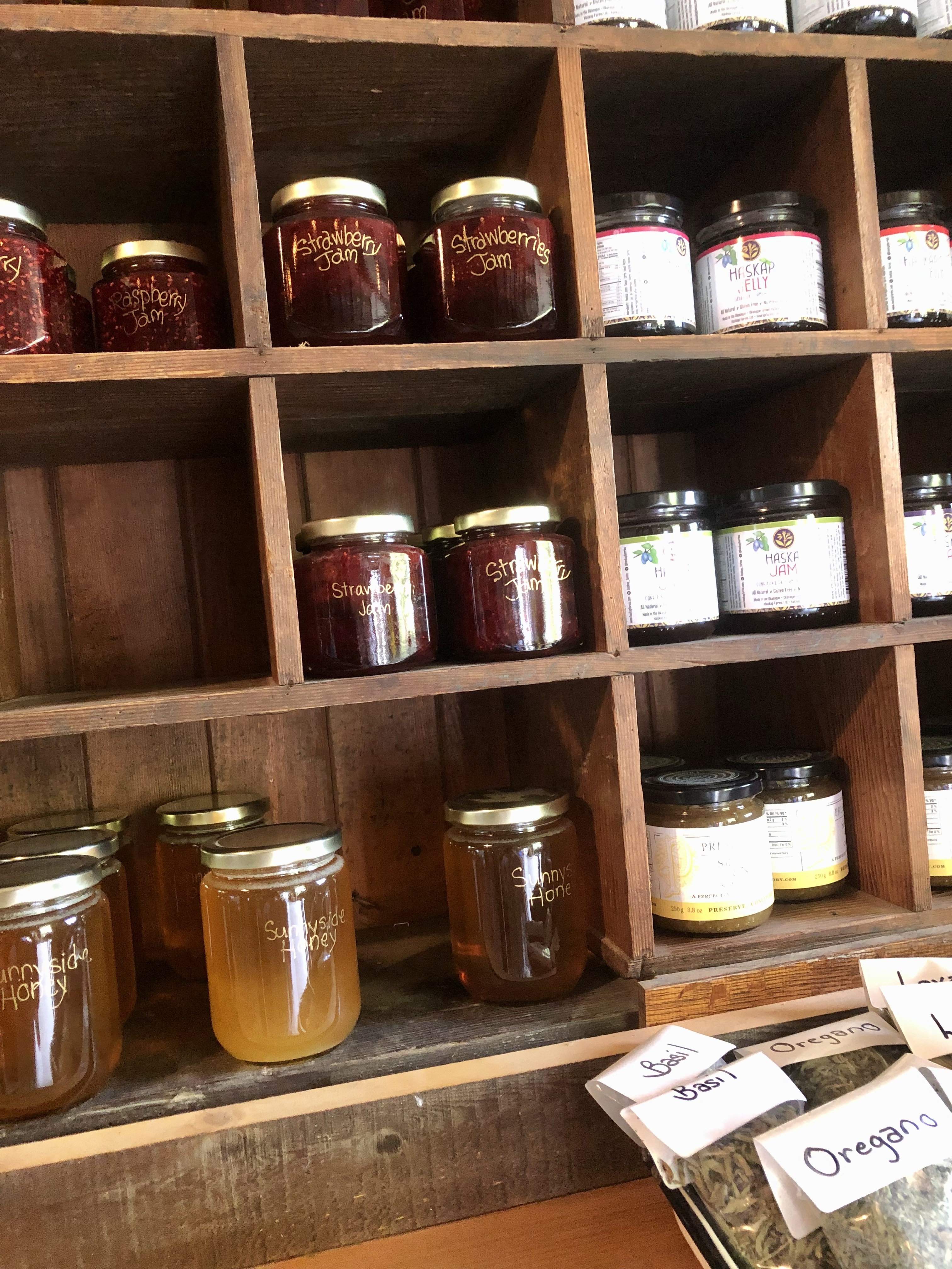 The array of fresh fruits, vegetables – picked that morning – was fantastic, nestled among dried flowers, herbs, home-made jams, and more.