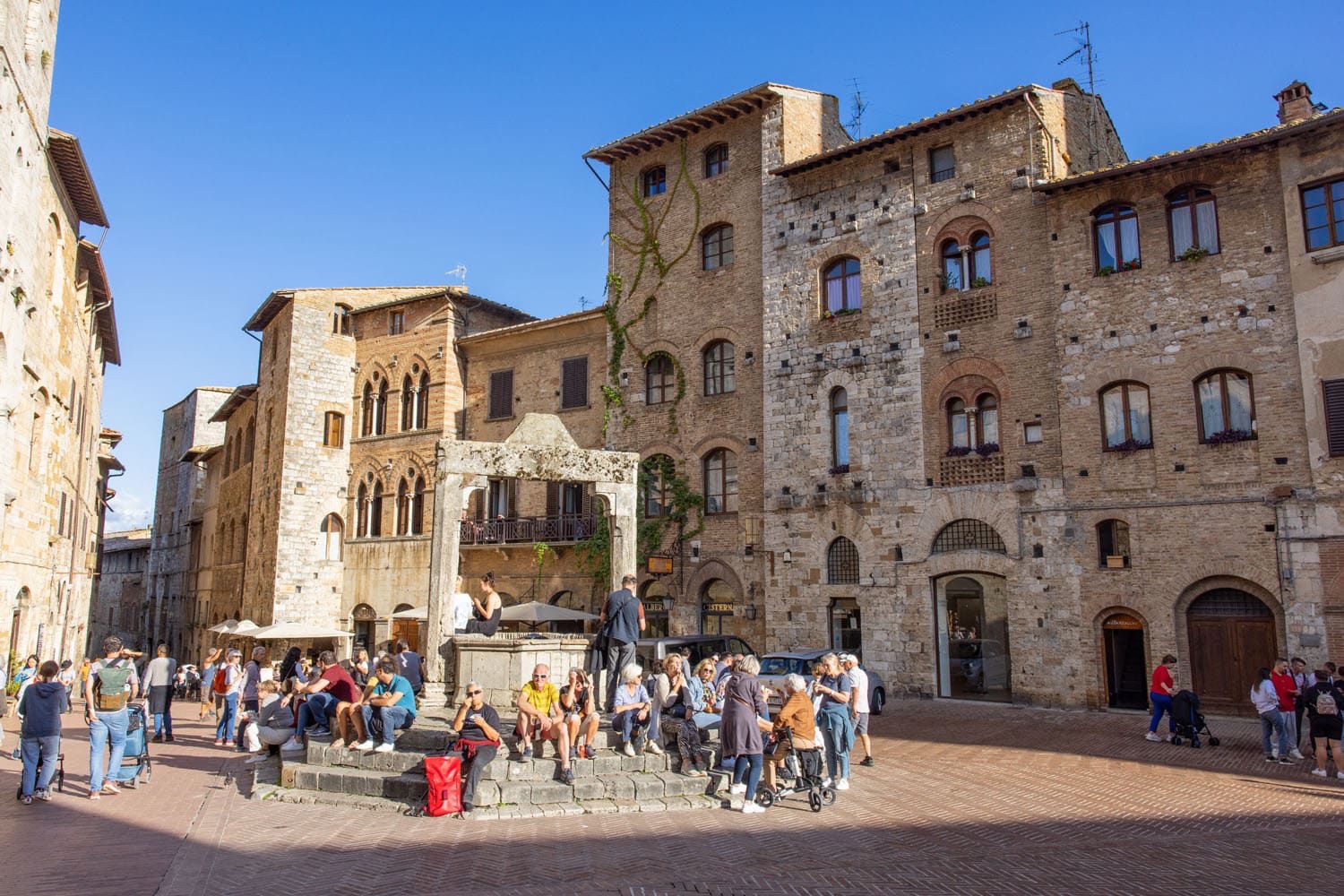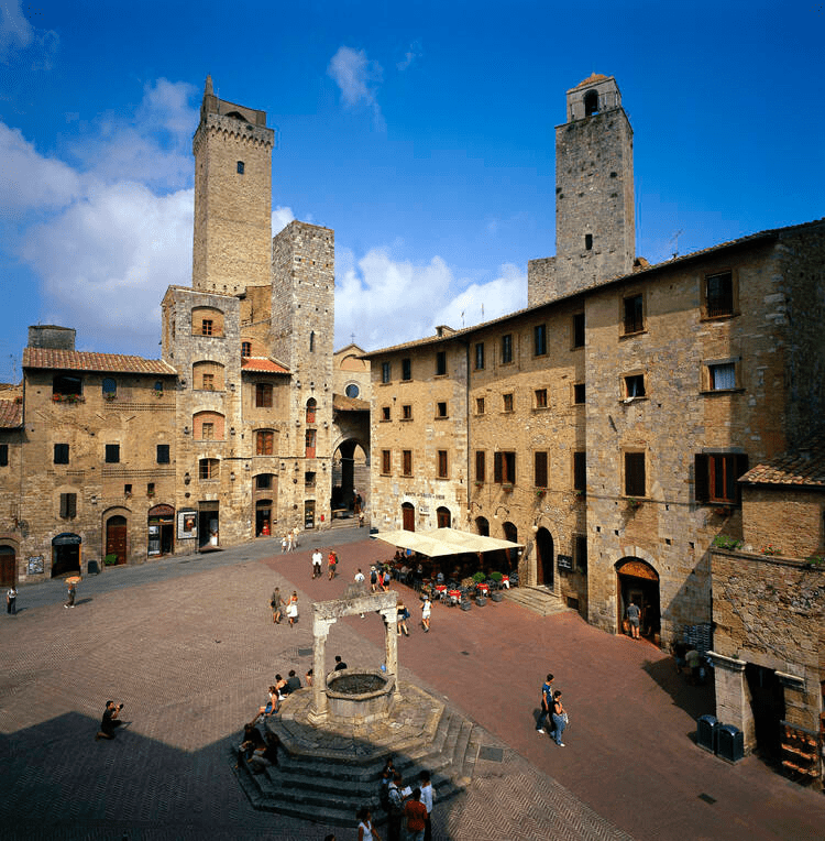 The city’s town centres on Piazza della Cisterna, consist of a triangular square, lined with houses from medieval times.