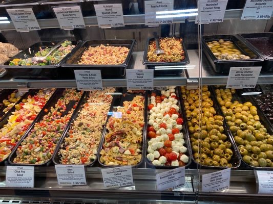 Olives, at least 50 plus, cheese close to 100 different ones.
