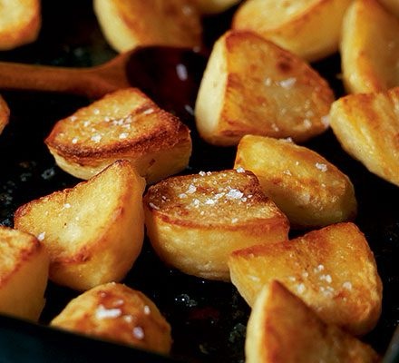 Crispy Lemon -roasted potatoes go well with the rich tasty, delicious roasted leg of lamb and when you add a Greek salad to it, you have the perfect meal.