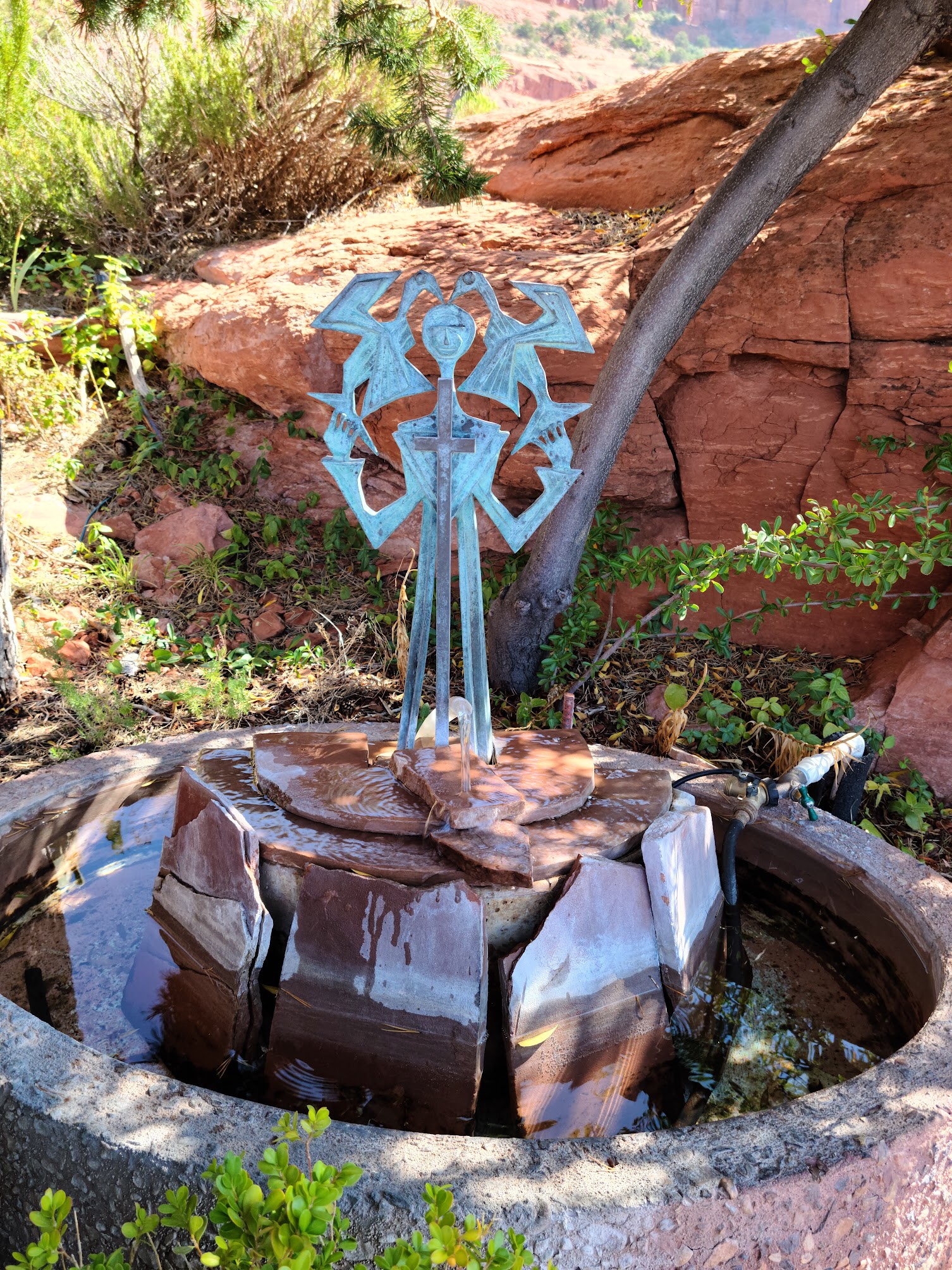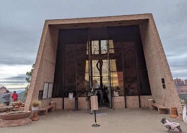 Situated in the middle of nowhere, nestled within the confines of red, rugged, mountains, the chapel is dominated by a 90-foot cross built by a student of the renowned Frank Lloyd Wright, Marguerite Brunswig Staude.