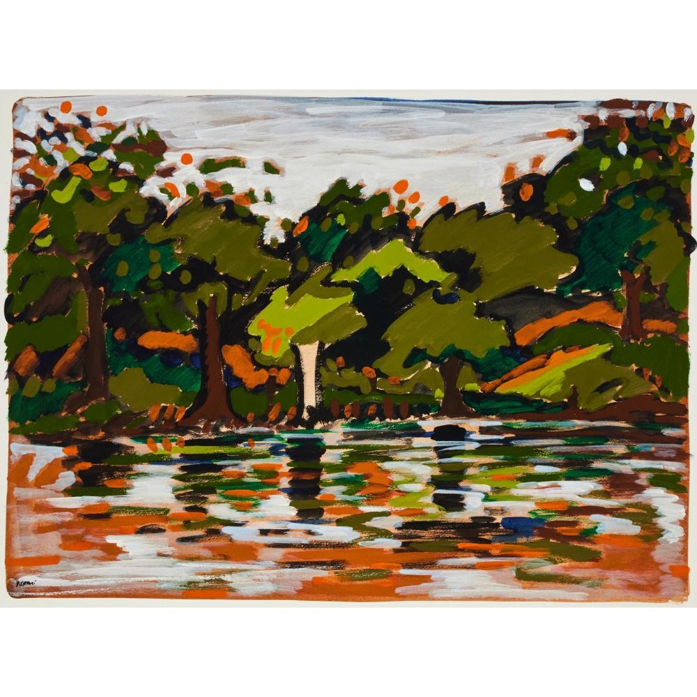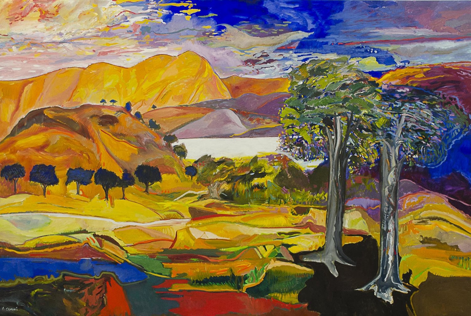 His use of colour, striking a vivid palette, intense reds, blues, and yellows conveying a sense of vitality and passion. His manipulation of light and shadow adding depth and dimension to his compositions. Chaki’s bold and vibrant use of colour set him apart from many of his contemporaries. His ability to convey deep emotion through his palette made his work instantly recognizable and impactful. Best known for his landscapes they are a perfect example – bold, vibrant, powerful, colours – a blend of abstraction and realism allows viewers to engage with his art on multiple levels, interpreting the forms and colours in their own way.