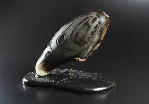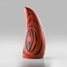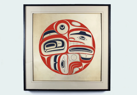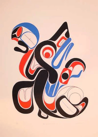 Considered one of the most important proponents in the revival of traditional Nuu-Chah-Nulth carving and design – his art features bold lines and geometric designs, often using asymmetrical elements and abstract symbols.