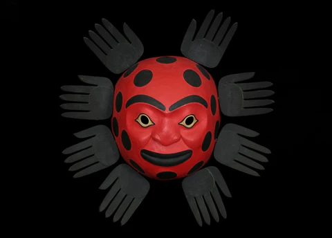 David’s masks are bold with expressive designs, that can include animal figures, human faces and supernatural beings, each carrying significant cultural and spiritual meanings.