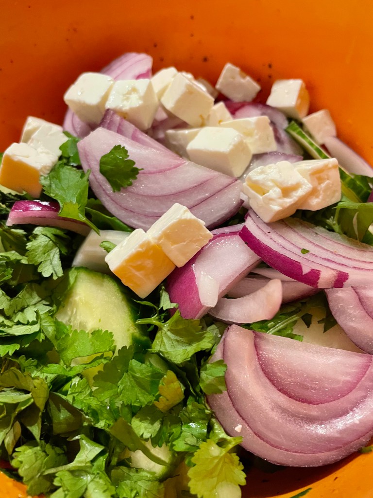 Given all the different recipes for this dinner we have organized everything in recipe blocks and in such a manner so that hopefully it will be easier to cook and in sequence starting off with the salad, followed by the chicken, squash and the potatoes.