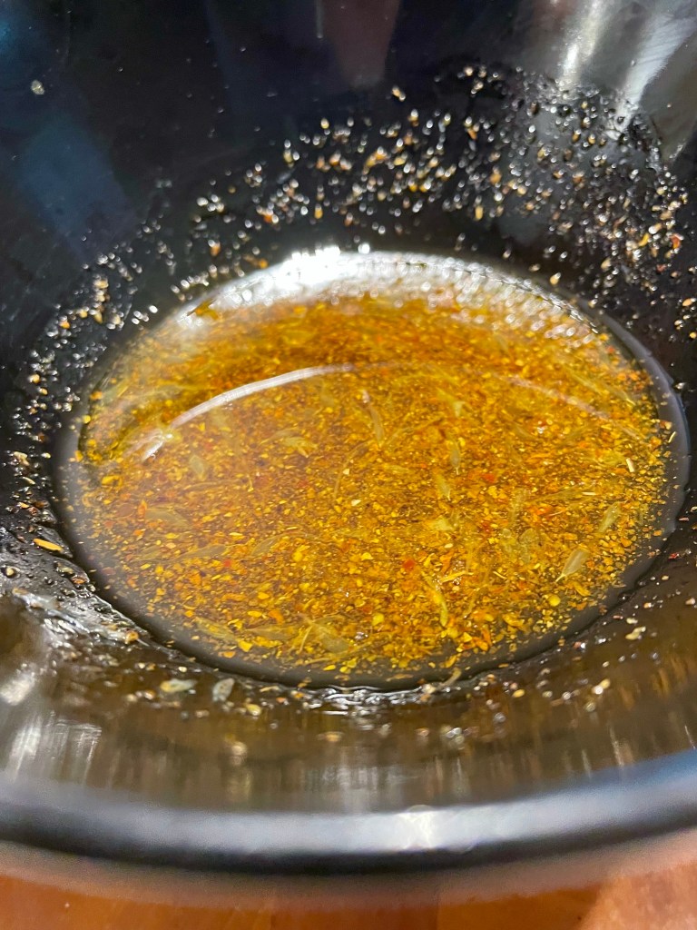 A small amount of butter, heated in the microwave for about one minute till it’s liquid