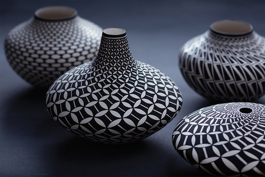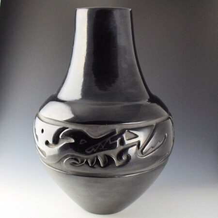 Her black-on-black and polychrome vessels featuring abstract designs and animal motifs are highly regarded.