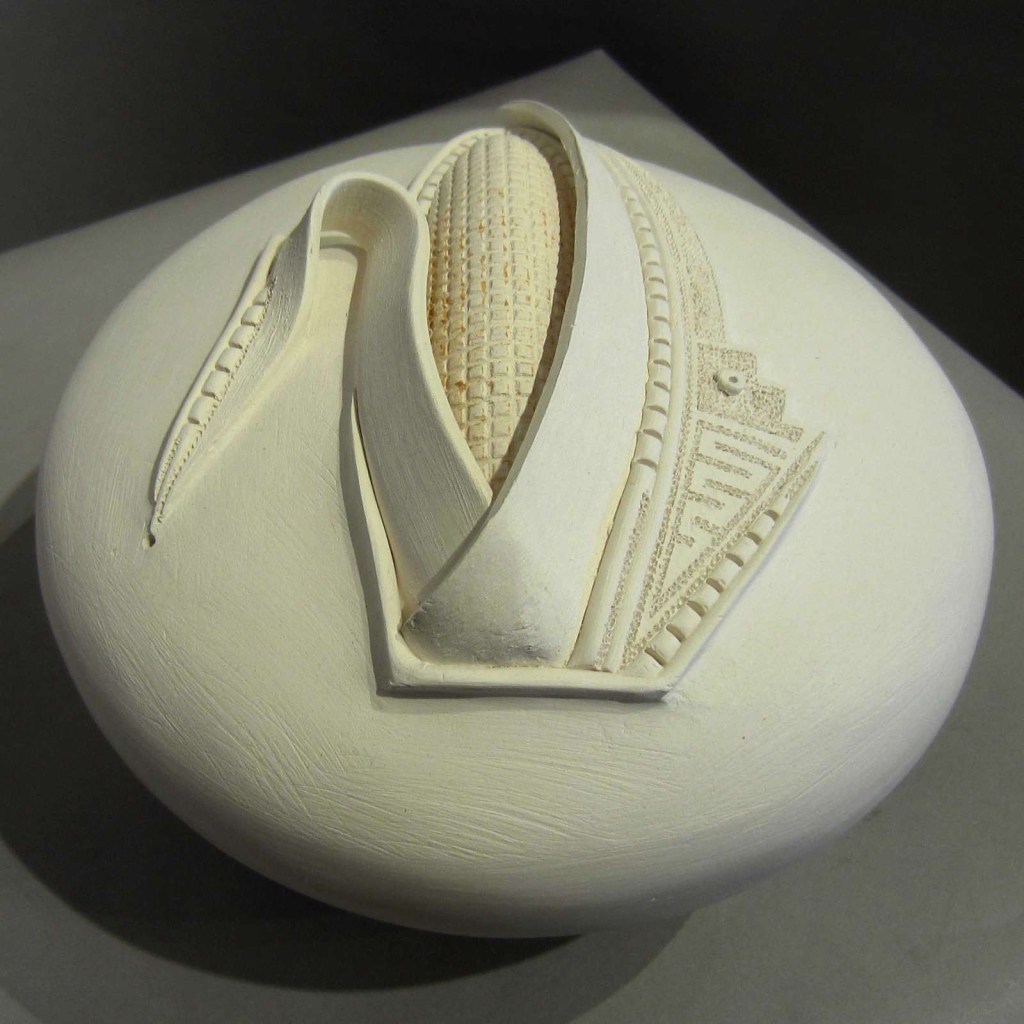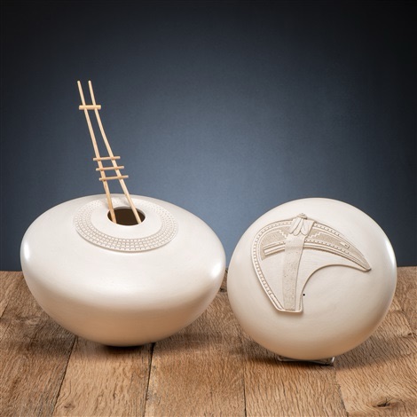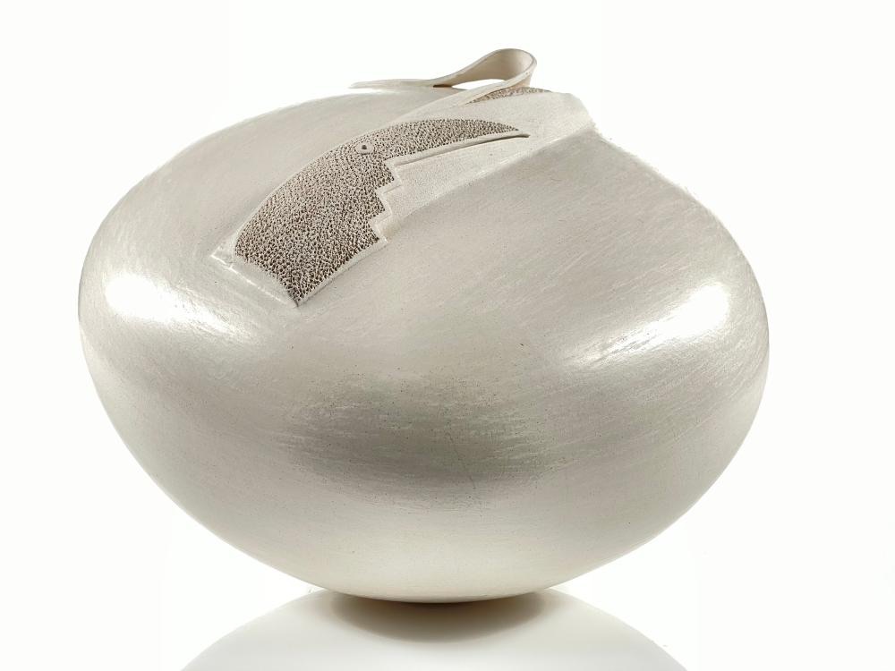 His white pottery is his trademark – the satin sheen achieved by meticulously using a stone to polish the pieces several times.