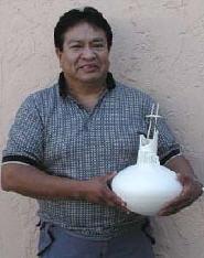 His work features intricate carvings and sculptures such as corn stalks, kiva ladders and puebla scenes.