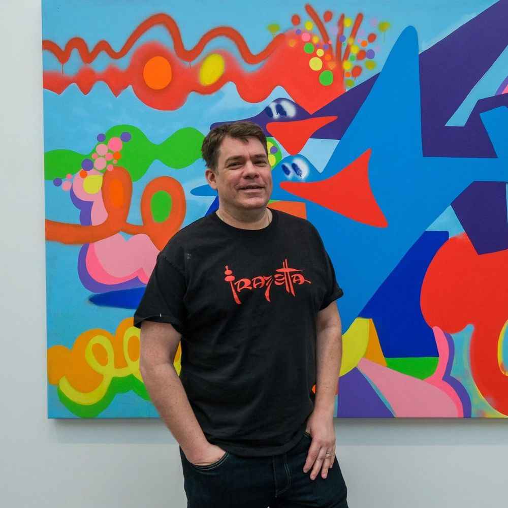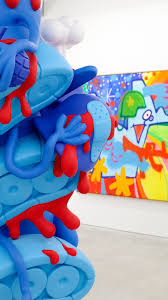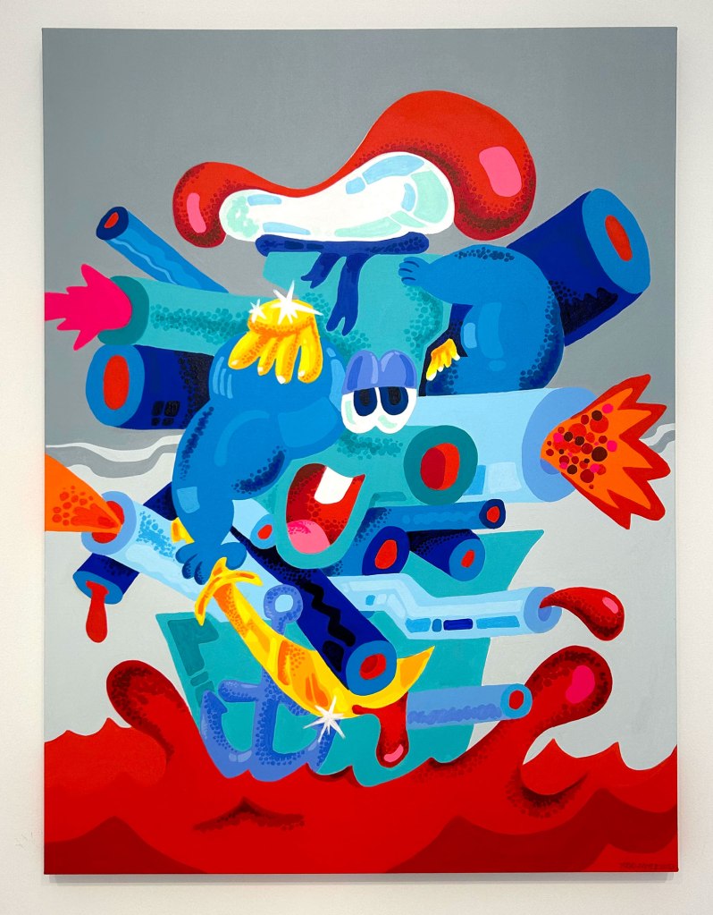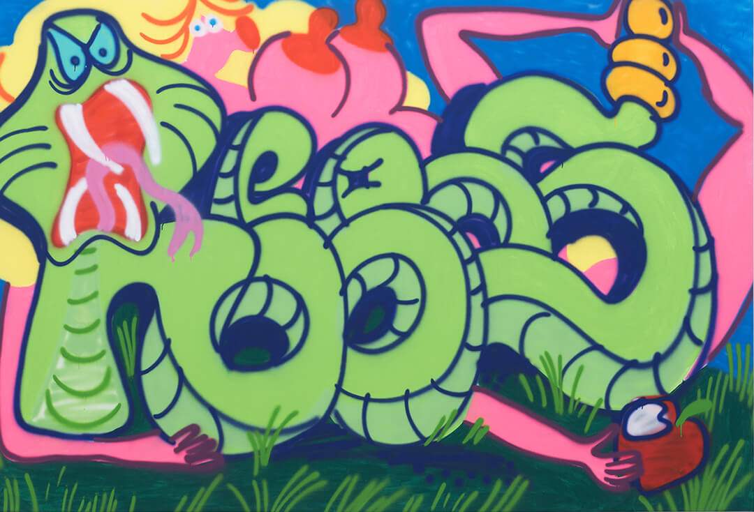 Today his art is characterized by its bold, playful, and often provocative nature, blending elements of graffiti, abstract expressionism, and pop art to create vibrant, surreal works that frequently incorporate humor and irony.
