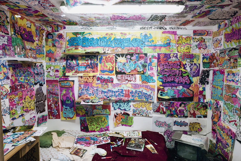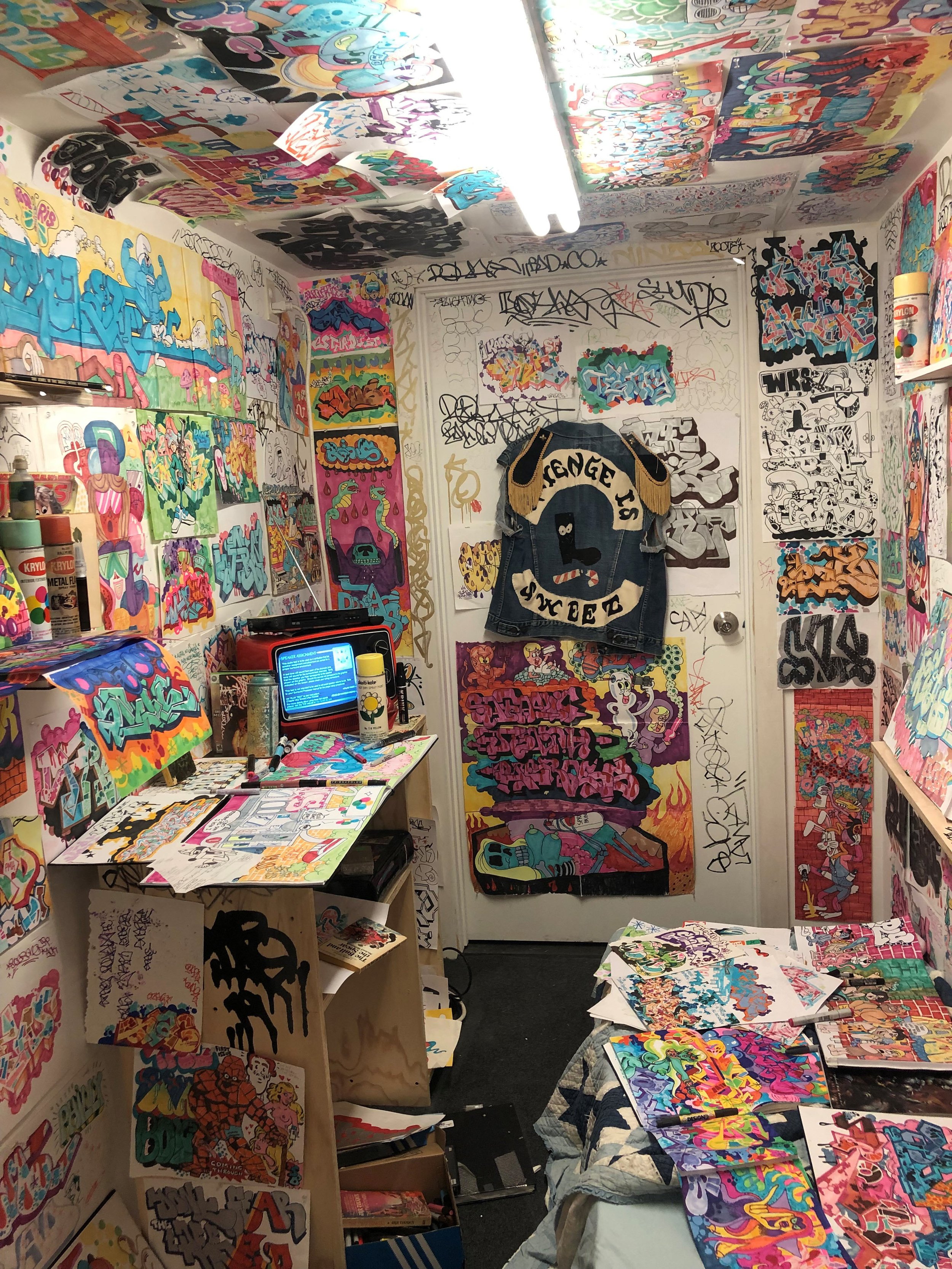 He was part of the city’s vibrant graffiti street art scene, creating works in subway tunnels, buildings, and other public spaces – known for their colourful, cartoonish, and humorous style, often incorporating social commentary, significantly influencing the street art movement.